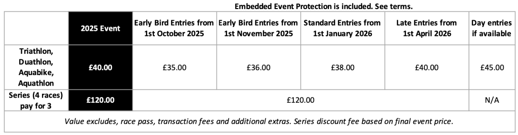 Entries Close – Entries for each race will close on the Monday before the race at 08:00. If capacity is reached then we may close sooner. We cannot guarantee that we are able to accept any entries after closing.
